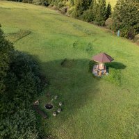 - Přirodní pramenitá voda v barelu s pumpičkou, ve stodole Palčovky.