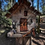 V horní části pozemku u lesa je v dřevěné bedně nachystané dřevo na ohýnek. Jako podpalovač je v bedně ve většině případů přichystána kůra z břízy, nebo drobné smrkové klestí.