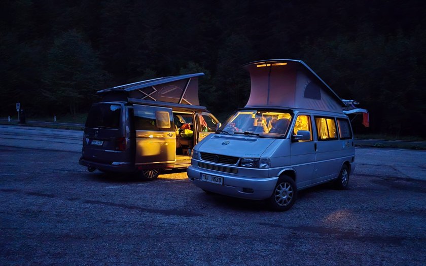 Originální Westfalia camper, kuchyňka, lednice, sporák nezávislé topení, palubní počítač, posilovač řízení, rádio, vyhřívaná sedadla, solární systém, klimatizace, couvaci kamera, měnič napění atd. Nosič kol. Zapůjčuje se s vybavením na vaření, markýzou, po domluvě televize, kávovar. menic napětí. Možnost zimní set s krycí Thermo plachtou na výklopnou střechu.